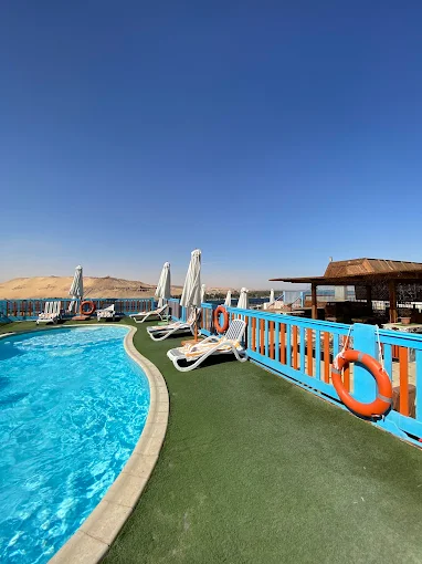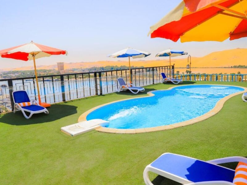 The hotel’s 24-hour reception staff speak Arabic, French, and English. Room service, porter service, a barber shop, and dry cleaning are available. The hotel features a garden with a terrace, as well as a pool terrace. All rooms are air-conditioned and elegantly furnished, with a private bathroom, a well-stocked minibar, and a TV. Some rooms offer views of the Nile River. A daily breakfast buffet is served, and guests can enjoy fresh fruit juices on the rooftop terrace, which boasts stunning views of the Nile Valley. A wide variety of meals are also available.